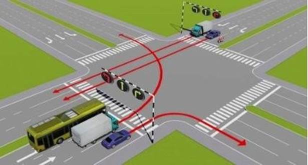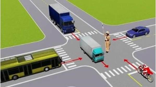 Các xe đi theo hướng mũi tên, những xe nào vi phạm quy tắc giao thông?